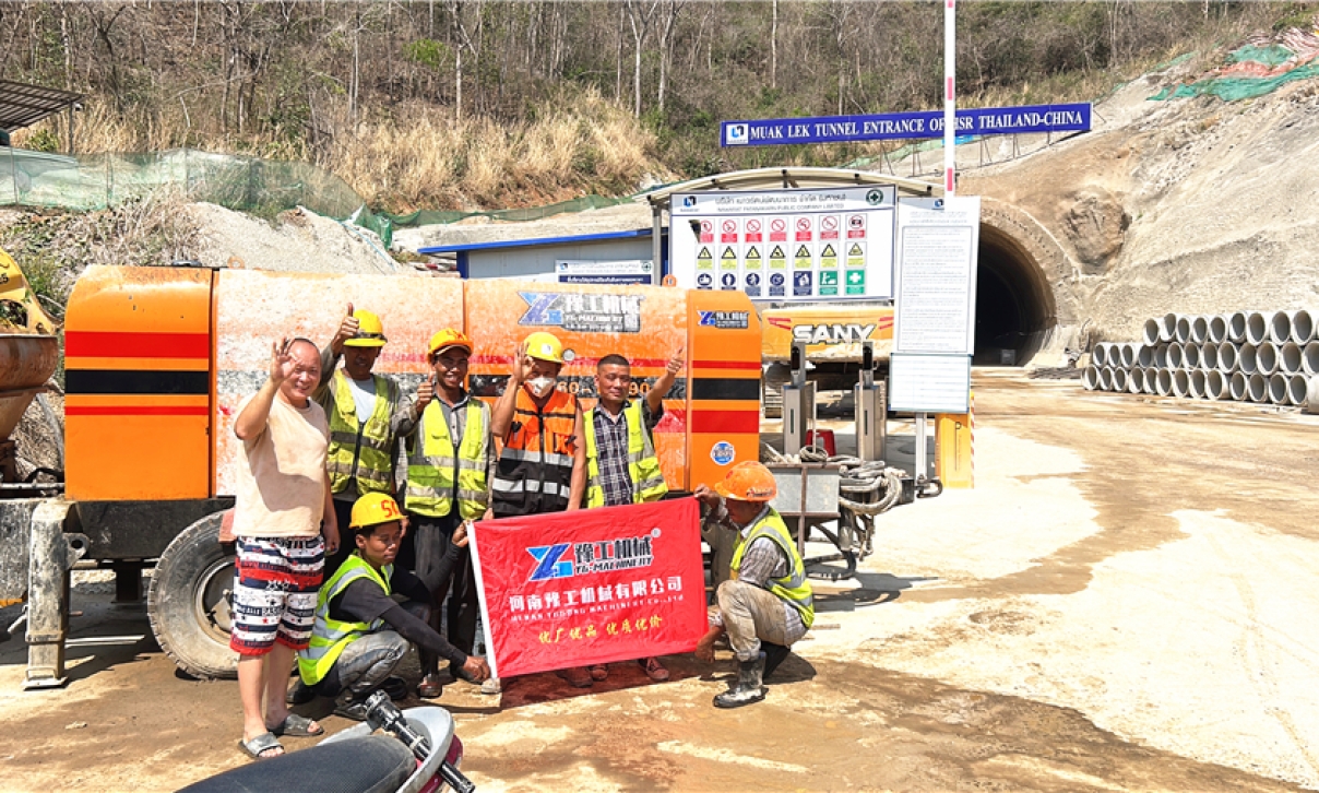 2022年2月,客戶第一次下單2臺雙噴頭液壓濕噴機,并在之后的時間里持續(xù)復(fù)購,截至2022年底,客戶已訂購設(shè)備6次,總貨款達千萬以上。目前中泰鐵路Muak LeK隧道四個站口,有三個站口都在使用豫工的設(shè)備。作為2022年的明星客戶,中泰高鐵Muak LeK隧道以其使用設(shè)備數(shù)量和使用時長,成為豫工2023春季巡檢的第一站,檢修對象包括液壓濕噴機、混凝土輸送泵、工字鋼彎拱機、混凝土攪拌站等隧道工程設(shè)備!