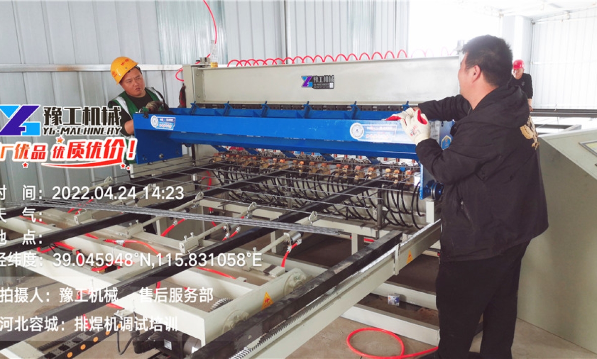 中鐵十一局雄安新區(qū)容西市政工程建設(shè)項(xiàng)目,客戶(hù)需要制作寬2米,長(zhǎng)6米,鋼絲直徑6-8mm,20個(gè)焊點(diǎn)的鋼筋網(wǎng)片,用于批量的建筑用鋼筋網(wǎng)片焊接??蛻?hù)精心篩選了4個(gè)廠(chǎng)家,提供設(shè)備方案,最終選擇豫工,是對(duì)我們專(zhuān)業(yè)能力和高性?xún)r(jià)比施工方案的高度認(rèn)可。針對(duì)客戶(hù)的施工要求,產(chǎn)品經(jīng)理并沒(méi)有推薦最高配置的排焊設(shè)備,而是提供了最適合客戶(hù)需求的高性?xún)r(jià)比設(shè)備方案:半自動(dòng)氣動(dòng)鋼筋網(wǎng)片排焊機(jī)+2立方左右空壓機(jī)+豫工17年經(jīng)驗(yàn)的專(zhuān)業(yè)服務(wù),因?yàn)檫@份想客戶(hù)之所想的合作誠(chéng)意,最終贏(yíng)得客戶(hù)青睞。試機(jī)過(guò)程中,設(shè)備通過(guò)氣動(dòng)下壓的焊接方式,焊接壓力均勻,焊點(diǎn)牢固、穩(wěn)定,焊接速度快,可以達(dá)到40排/分鐘。