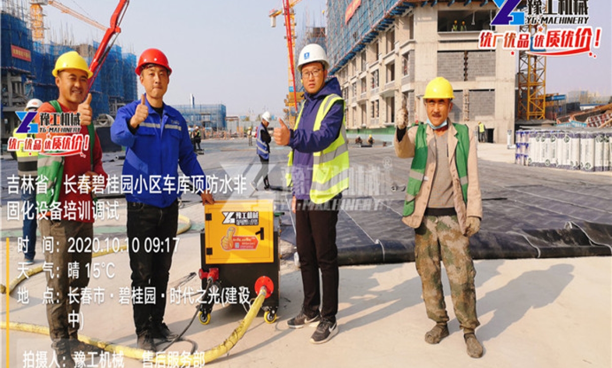長(zhǎng)春市碧桂園車庫(kù)頂棚防水施工,面積8萬(wàn)平方, 天氣轉(zhuǎn)冷,白天施工時(shí)間縮短,工期臨近,客戶放棄人工刮涂,改為機(jī)器施工,之前租了一臺(tái)噴涂設(shè)備,租金一天3000元!然而遠(yuǎn)遠(yuǎn)不能滿足工期需要??蛻艚?jīng)老客戶轉(zhuǎn)介紹,選擇購(gòu)買豫工非固化噴涂機(jī),計(jì)劃兩臺(tái)噴涂機(jī)同時(shí)施工,提高工作效率,保證工期不誤。 豫工YGF-2000非固化噴涂機(jī)試機(jī)過(guò)程中,施工效果使客戶有種如獲至寶的感覺(jué)。不管工作效率、噴涂寬度還是噴涂效果,都遠(yuǎn)超客戶預(yù)期,客戶表示:與租用設(shè)備相比,豫工非固化噴涂設(shè)備使施工效率提高了4-5倍。 張工表示:豫工非固化,配備6.1L定制鋼泵,容量大,動(dòng)力強(qiáng),霧化扇形可達(dá)80cm,施工更高效,一天輕松幫客戶噴涂2000多平方。配合豫工為非固化噴涂機(jī)專門研發(fā)的溶膠機(jī),全程高效、均勻加熱,可使設(shè)備噴涂更均勻,效果更好。