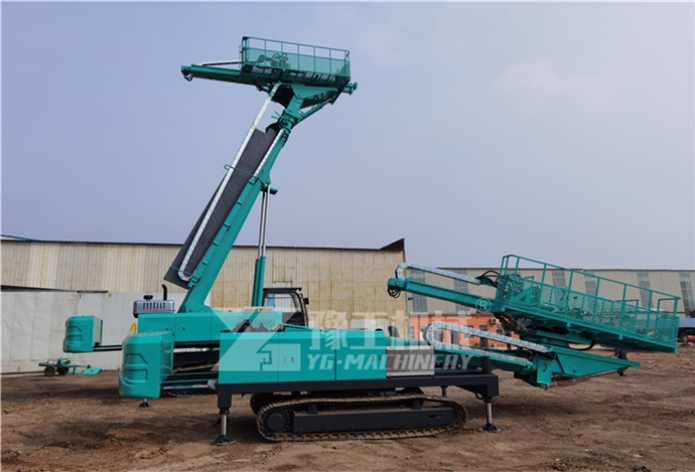 該鉆機采用履帶式底盤,行走方便,配套使用麻花鉆桿,三葉合金鉆頭,優(yōu)點是鉆臂的行程高度可達到5.5-20米,日鉆孔效率可達400-600米,大大節(jié)約了人工成本。