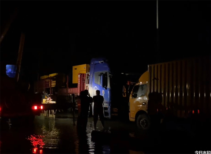 安裝調(diào)試一直持續(xù)到晚上,遭遇暴雨來(lái)襲,豫工技術(shù)員堅(jiān)守一線,與抗洪人員一道,全力以赴,通宵奮戰(zhàn),保證5臺(tái)防汛泵車全部投入工作,第一時(shí)間開始執(zhí)行防汛吸水任務(wù)!